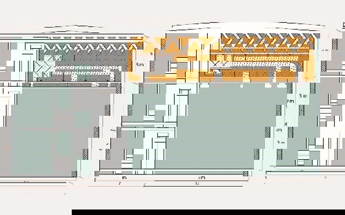 Etageareal: 22 m * 9 m = 198 m2